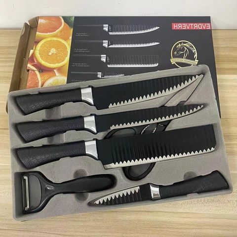 Nero ondulato sei pezzi coltello 238A in acciaio inox cucina commercio estero scatola di colore scatola regalo